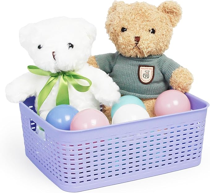 - 【3 Pack Plastic Organizer Basket】This set includes 3 purple plastic organizer baskets with woven pattern. Each basket measures 12.2*9.65*4.53 inches. The baskets feature a small hole design to enhance ventilation and improve organization for better storage of your items