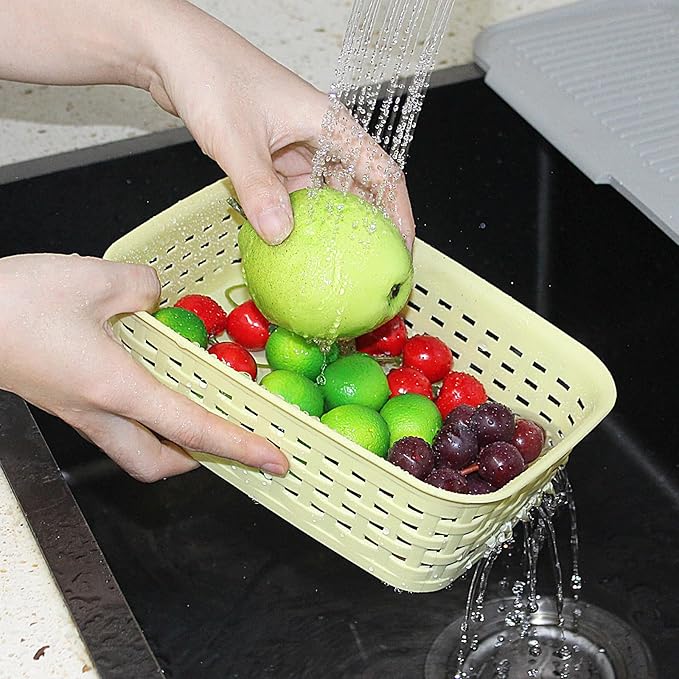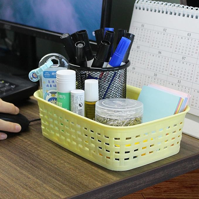 - 【3 Pack Plastic Organizer Basket】This set includes 3 yellow plastic organizer baskets with woven pattern. Each basket measures 7.87*5.71*2.56 inches.The baskets feature a small hole design to enhance ventilation and improve organization for better storage of your items