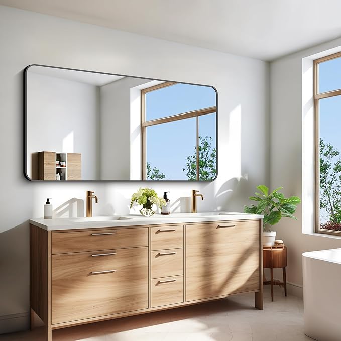 - ROUNDED CORNER DESIGN : The 30x60 inches mirror features an elegant rounded corner design and measures 30" x 60". Its unique shape adds a touch of sophistication and upscale beauty to your home.