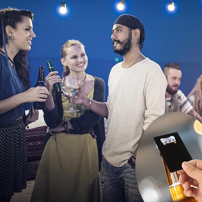 - Widely To Use: our bottle opener credit card size can be applied in many occasions, such as family gatherings, bars, company celebrations, weddings, camping, rave parties and more;wallet bottle opener is also a nice groomsmen gift and Father's Day gift