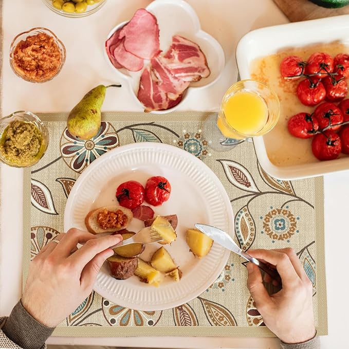 Snycler Table Runner Boho Table Runners Vintage Elegant Farmhouse Table Center Linen Decor for Home Dining Party Entrance (12x18 Inch ,Set of 4) Khaki