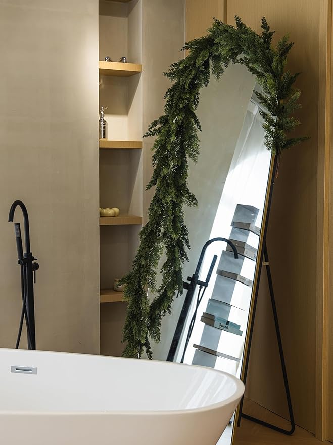 - 【High-Quality Materials, Exceptional Durability】Our Cedar garlands are made from high-quality PE material, ensuring their durability and longevity. Each stem is flexible and easy to arrange, allowing you to adjust the shape as needed. Due to the long transportation time, the product may have a slight odor after unpacking. The odor will dissipate naturally after ventilation. Thank you for your understanding.