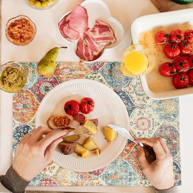 Snycler Table Runner Boho Table Runners Vintage Elegant Farmhouse Table Center Linen Decor for Home Dining Party Entrance (12x18 Inch ,Set of 4) Boho-Yellow