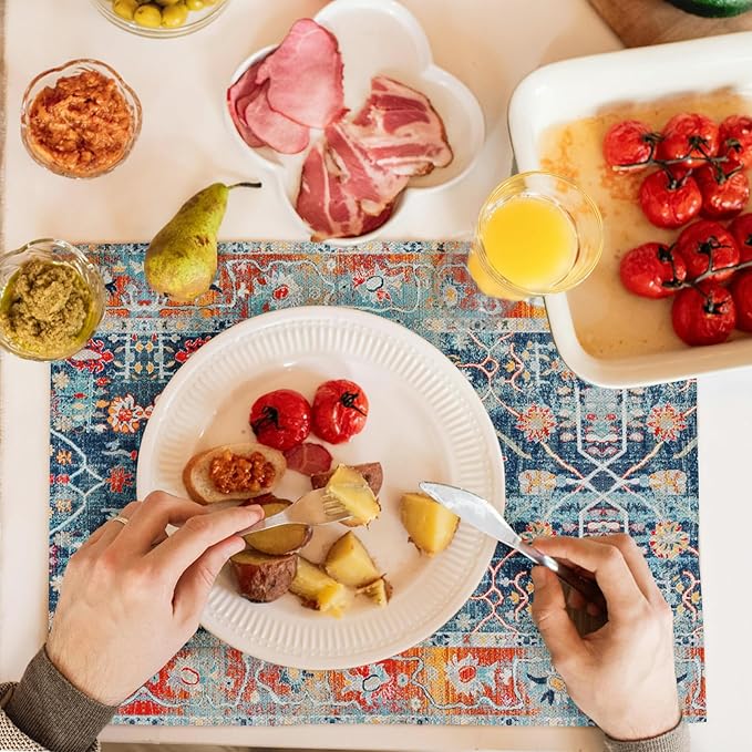 Snycler Table Runner Boho Table Runners Vintage Elegant Farmhouse Table Center Linen Decor for Home Dining Party Entrance (12x18 Inch,Set of 4) Boho-Blue&Red