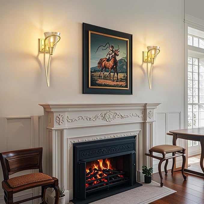 - 【Easy installation】All the components and all the necessary hardware needed for this torch decorative wall lamp are included in the box. All you need to do is connect the wires, attach the base to the wall, place the glass lampshade and connect the bulbs.