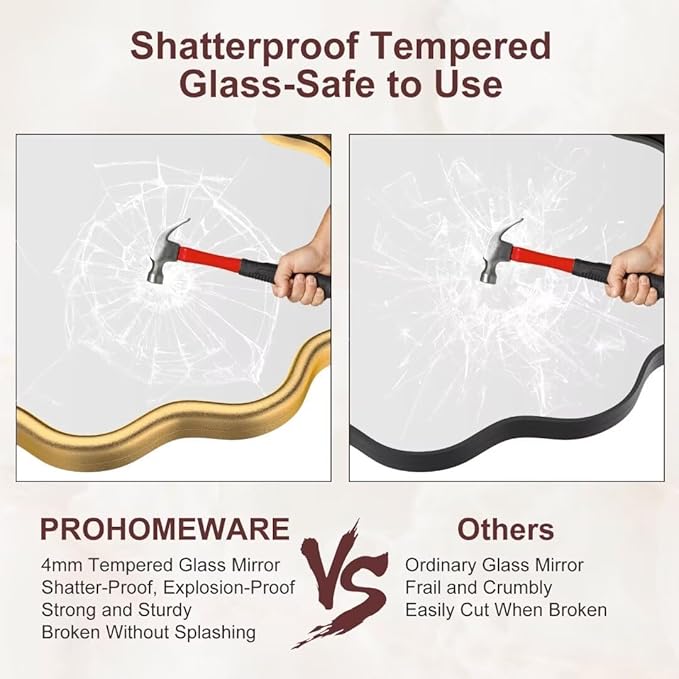 - 【Shatterproof Tempered Glass】: The wall-mounted bathroom mirror features 5MM tempered glass with shatterproof film, which is shatter-proof, burst-proof, and ensures your safety even in case of breakage