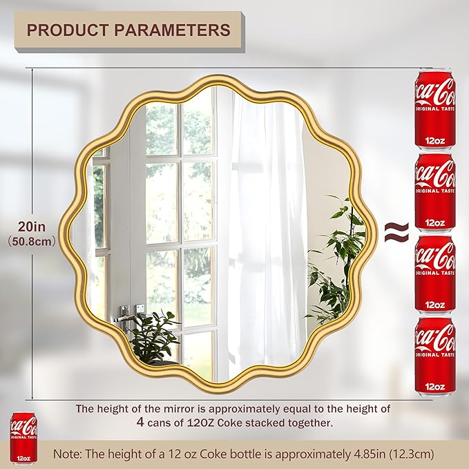 - 【Modern Simple Style Decorative Mirrors】: The round wavy frame mirror with its modern decorative, it can be used in a variety of scenarios, suitable for bathroom upgrades, hotels, vanity, farmhouse, bedroom, living room, dining room, entryway, fireplace, corner