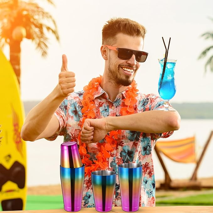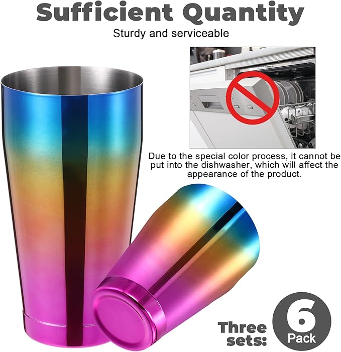 Sabary 6 Pcs Cocktail Shakers Professional Bar Shaker Boston Set Stainless Steel Martini Drink Mixer Basic Tool Weighted Shake Metal Can Cocktail Shaker Set, 18 Oz, 28 oz (Gradient Color)