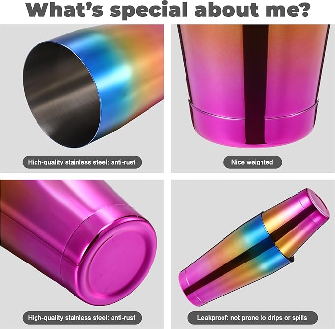 - Leak Proof Boston Shaker: the stainless steel shaker has been tested to be more waterproof than glasses shakers, less likely to leak, this Boston shaker set is not easy to freeze, drip or spill as you pour your drink