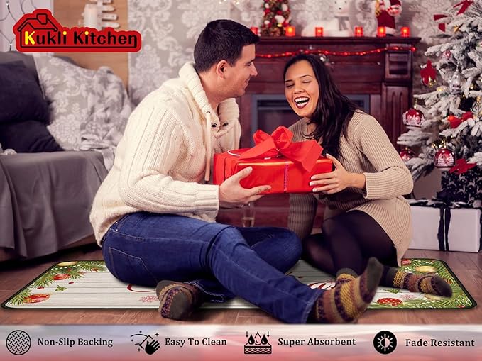 - Absorbs Water Kitchen Mat - Xmas Doormat made of non-woven fabric top, can absorb water and keep dry, providing you with a clean and tidy room and extend a warm welcome to all who enter your home