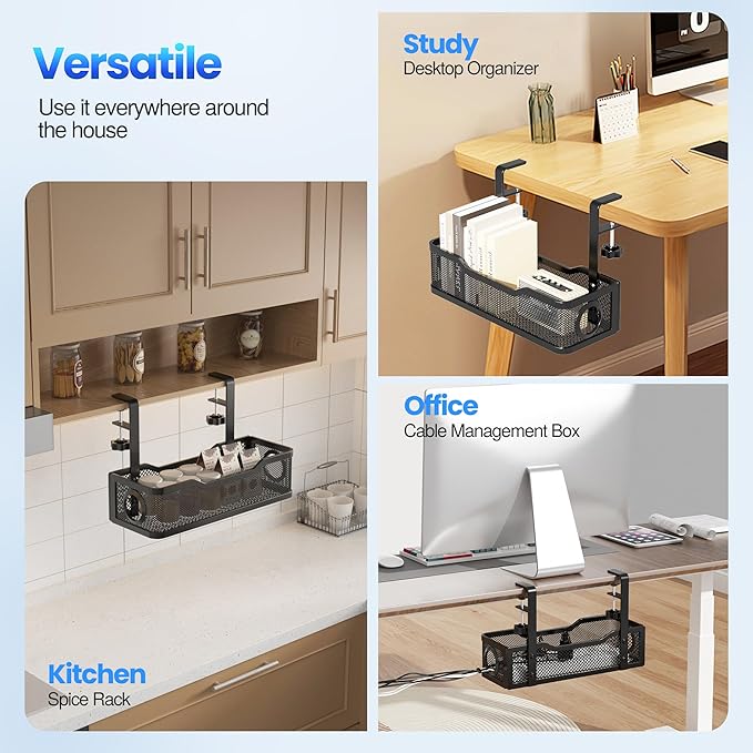 - ๐๐จ ๐๐๐๐ ๐ญ๐จ ๐๐ซ๐ข๐ฅ๐ฅ๐ข๐ง๐ ๐๐จ๐ฅ๐๐ฌ - Instead of damaging to your desk, our under desk cable management tray can be hanged directly to desk frames and change its position easily as you like, unlike others screw installation. It excellent to install a clamp on any wood, glass, or any material on your desk.
