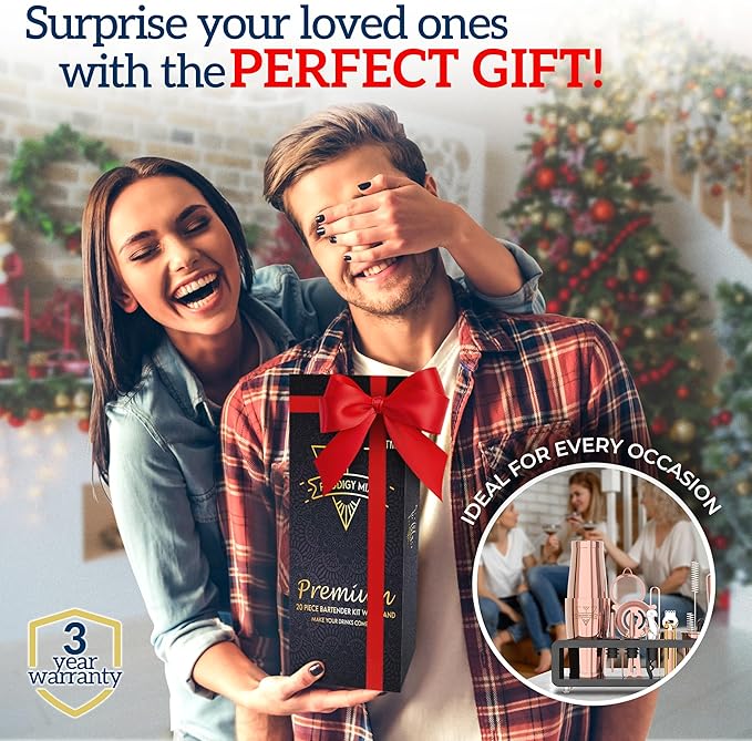 - ✔ THE PERFECT GIFT – Prepare to delight your loved ones. Our all-inclusive cocktail kit is packed inside a luxury gift box, making this martini shaker set the perfect gift for a cocktail lover.
