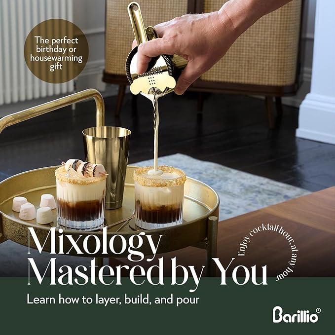 - Top Rustproof Stainless Steel» Serve you guests with style: Barillio is here to offer to bartenders and enthusiasts a steady stream of high quality tools. Barillio bar essentials are designed to be practical and elegant, yet durable enough for daily use. This gold cocktail set is made of the highest quality stainless steel grade: SS304 & SS430, designed not to rust.