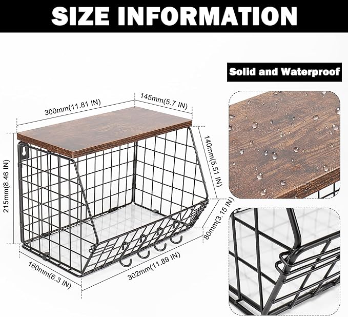 - WIDELY APPLICATION: The fruit basket with wood shelf and 4 S-hooks maximizes organization in various space. Ideal for storing items in kitchen, bathroom, living room, office and dressing room