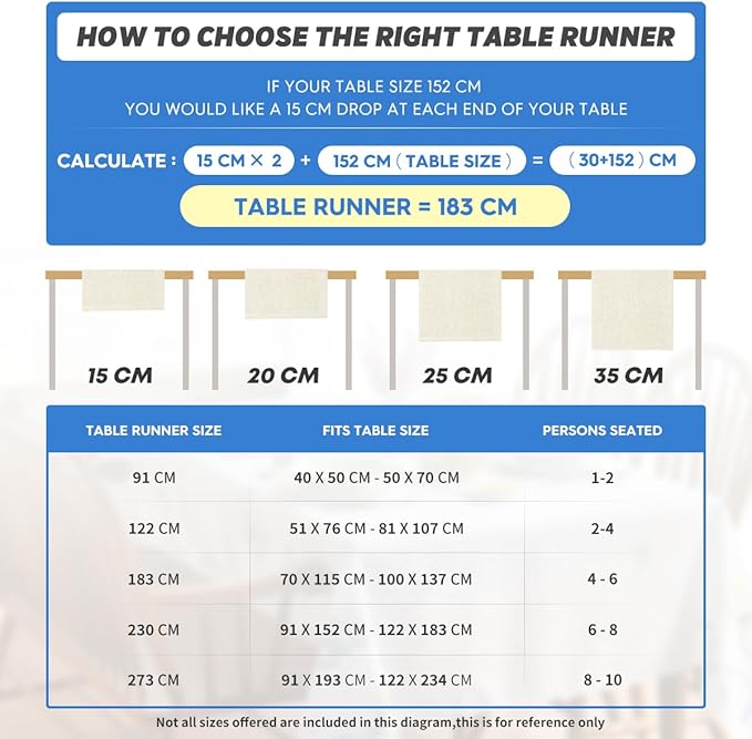 - Fits Table Size : This table runner is 13 x 120 inch, appropriate for a table that can seat 10-12 people, better match your table and give you a delightful dining experience