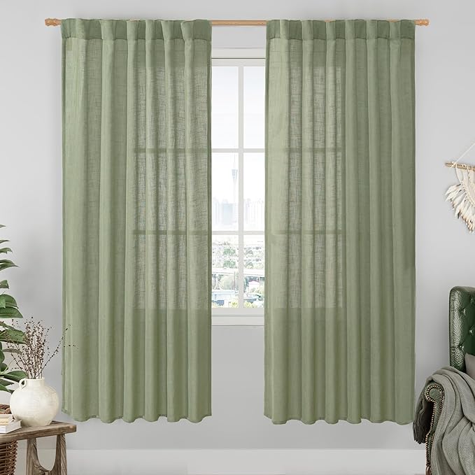 LAMIT Sage Green Linen Curtains for Living Room, 78 inch Length, Light Filtering Semi Sheer Panels with Back Tab and Rod Pocket, Christmas Panels for Bedroom/Sliding Glass Door, 52 x 78 Inch
