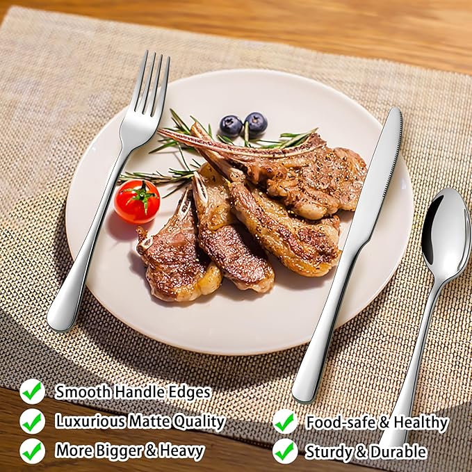 - Multiple Occasions: The curvature of our tableware handle is ergonomic, and the appropriate weight of the tableware ensures maximum comfort during use. Our tableware sets are perfect for dining, family dinners, friends gatherings, parties, weddings and other daily life or formal occasions.