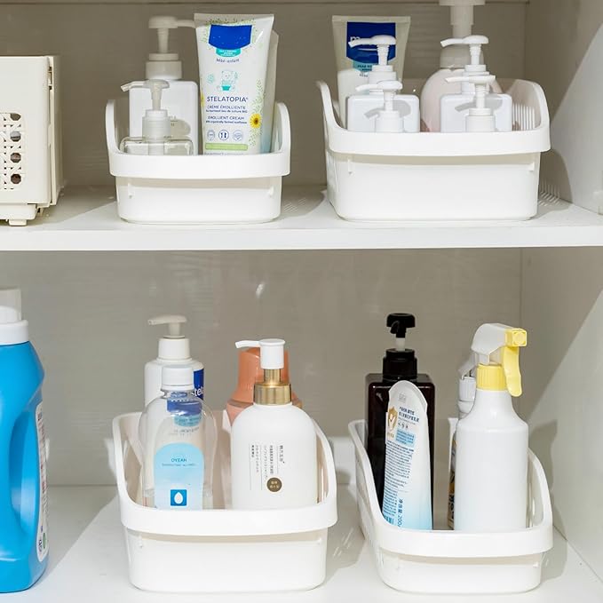 - QUALITY MATERIAL: The under cabinet organizer is made of high quality shatterproof plastic with no odor. The plastic baskets for storage are flexible and easy to clean, and the soft cream color highlights the texture.