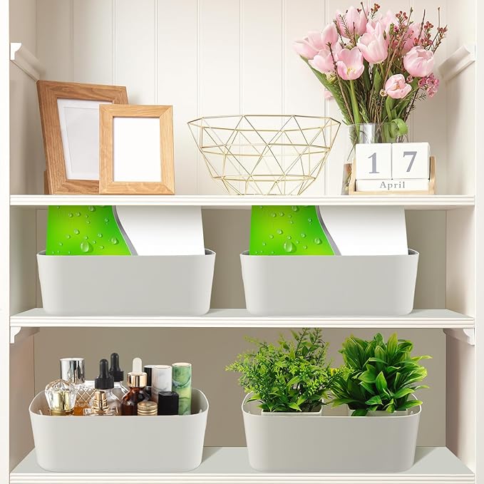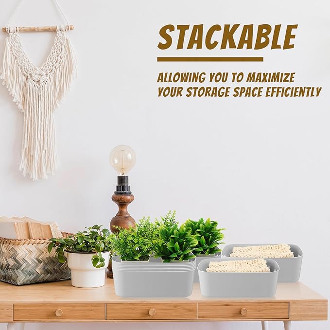 - Suitable Size: our plastic small cabinet organizer measures approx. 8 x 5.7 x 3 Inch inches, large in capacity, you can put different things into them, and stack these grayish white boxes together to save horizontal space when not in use