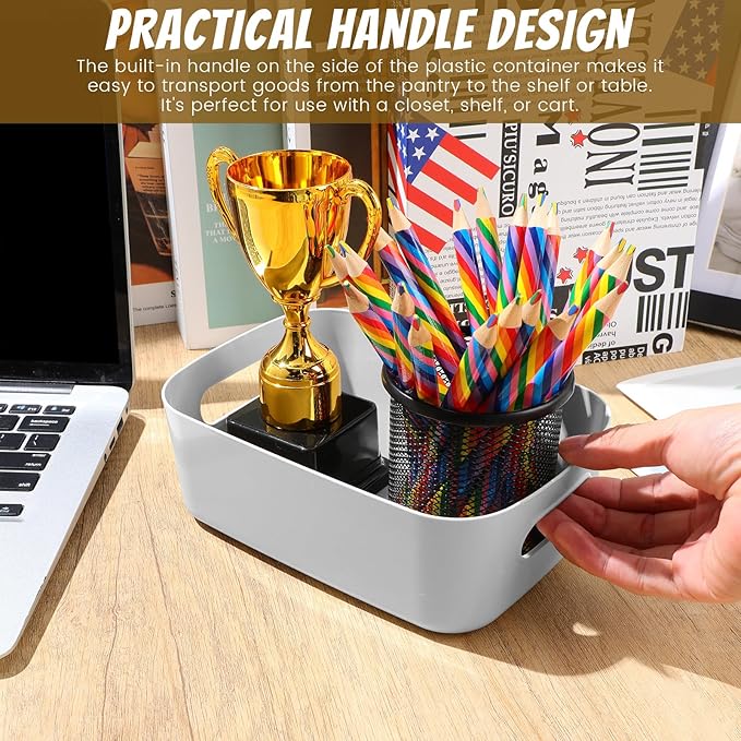 - Multipurpose Storage Bin Set: you will receive 10 pieces of grayish white plastic storage bins with handles, the ample quantity can certainly meet your daily storage requirements and classification needs, which can hold a lot of things, maximizing your space and making your home tidier and cleaner