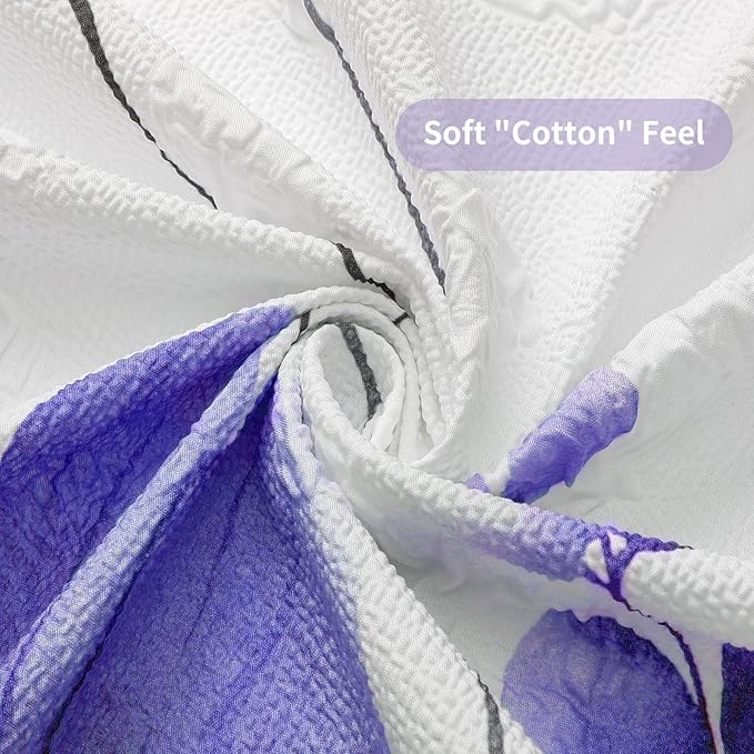 QIYI 3D Embossed Butterflies Blue Purple Flower Shower Curtain, Minimalist White Cloth Textured Waterproof Fabric Set with Hooks, 72x72