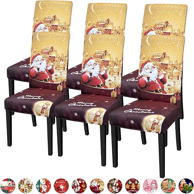 Christmas Chair Covers for Dining Chairs, Stretch Dining Covers, Dining Room Chair Covers Set of 4/6, Removable Washable Dining Chair Slipcovers for Home Hotel Banquet Holiday Decoration (30, 6pcs)