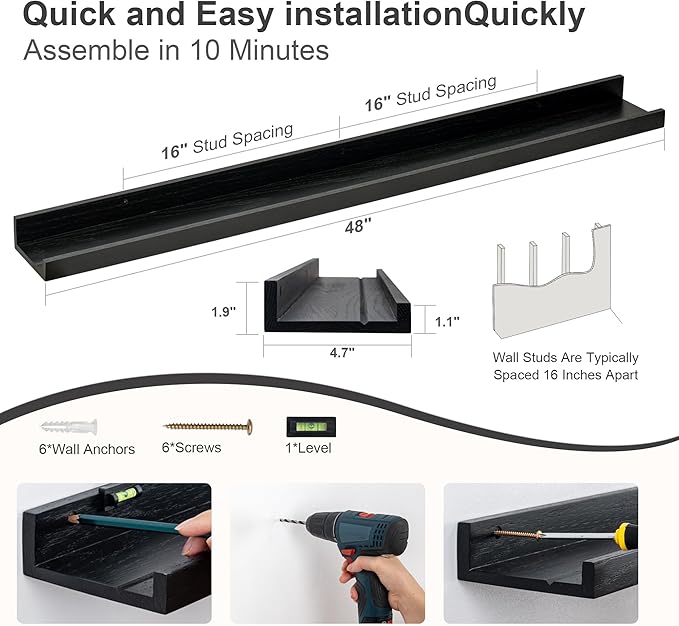 • Multi-Functional: Get creative and find more functions other than the long picture ledge shelf. FLYJOE storage ledge shelves can act as a kids' bookshelf, display shelf for collectibles figures, and more.
