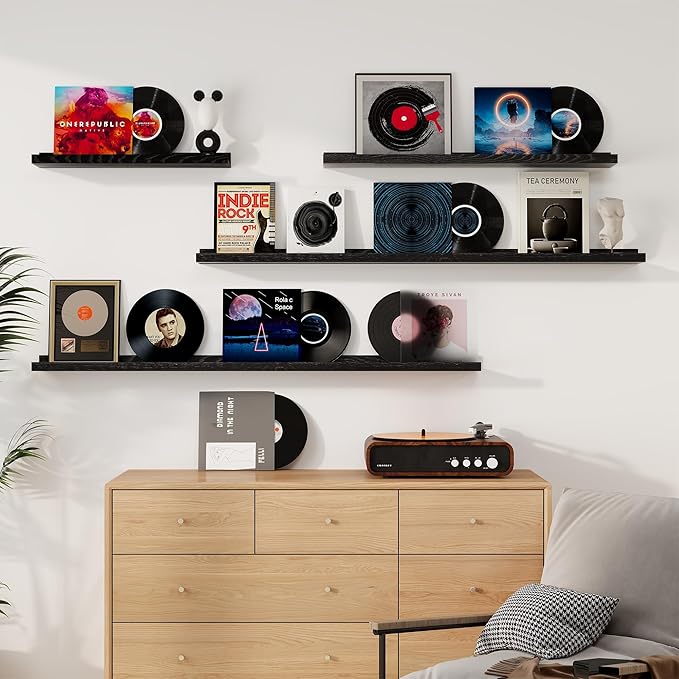 - Picture Wall Collage Decor: If you have dozens of pictures but don't know how to display them, FLYJOE picture ledge shelves(especially large size) for wall are perfect for you! With our hanging shelves, store and display different types and size of photo frames in one place with no worries of falling off.