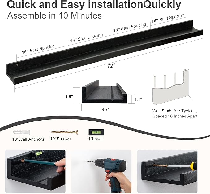 • Multi-Functional: Get creative and find more functions other than the long picture ledge shelf. FLYJOE storage ledge shelves can act as a kids' bookshelf, display shelf for collectibles figures, and more.