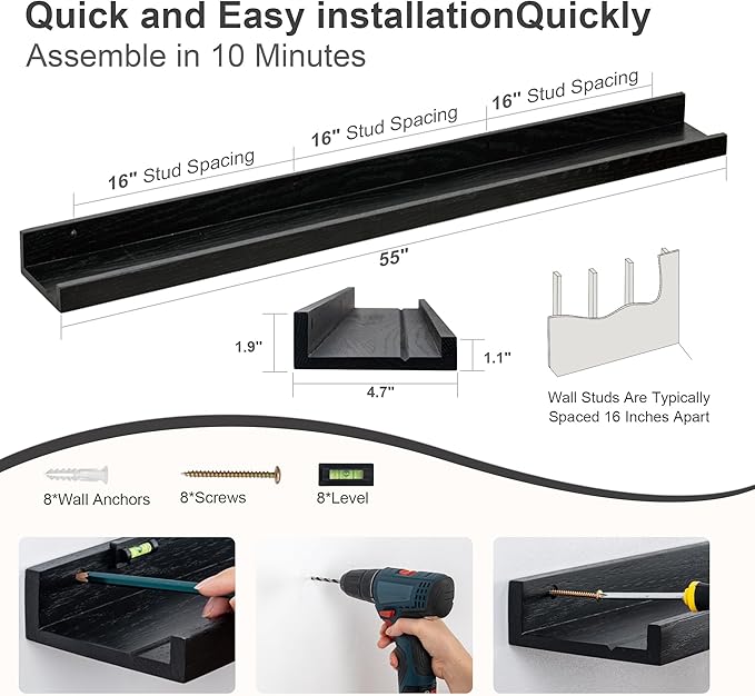 - Picture Wall Collage Decor: If you have dozens of pictures but don't know how to display them, FLYJOE picture ledge shelves(especially large size) for wall are perfect for you! With our hanging shelves, store and display different types and size of photo frames in one place with no worries of falling off.
