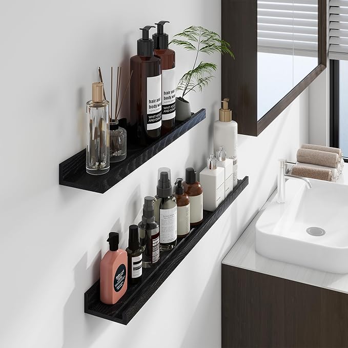 • Picture Ledge Design: Ideal for displaying photos, artwork, small plants, or collectibles, these shelves feature a thoughtful ledge design with a subtle lip and a shallow groove behind it. This design securely holds items in place while maintaining a clean, modern look.