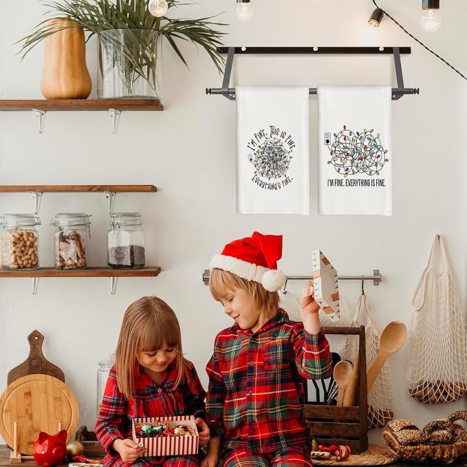 It's Fine I'm Fine Everything's Fine Christmas Kitchen Towels Set of 2, Christmas Hand Towels for Bathroom, Funny Christmas Dish Towels for Kitchen, Christmas Kitchen Bathroom Decor, 16x24 Inch