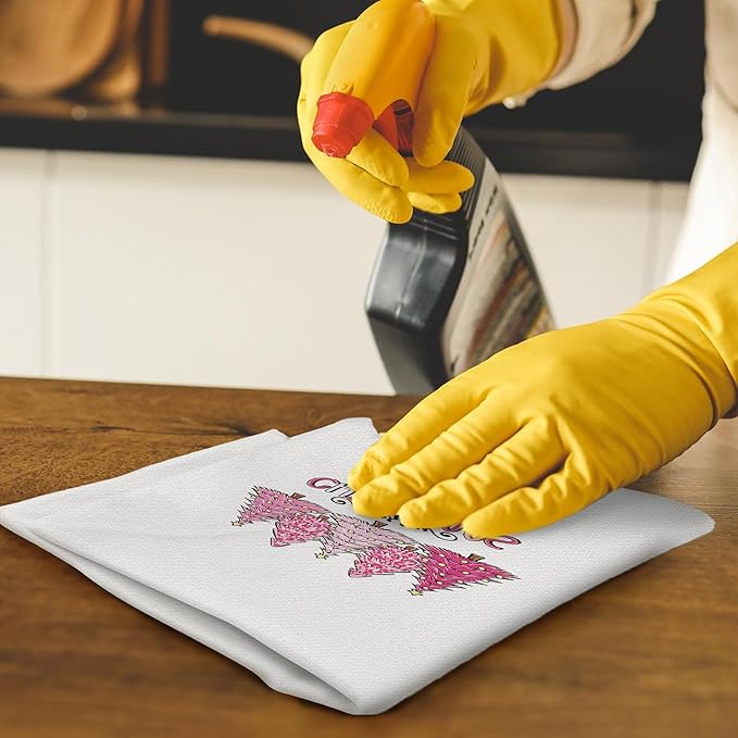 Pink Christmas Tree Hand Towels for Bathroom Decor, Christmas Tree Kitchen Towels Dish Towels for Kitchen, 16x24 Inch