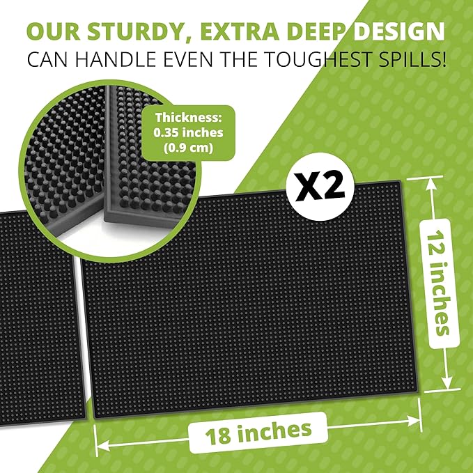 Bar Mat Set (2 Pack, 18"x12") - Non-Slip Rubber Mats for Countertop, Bartending, Home Bar - Durable, Easy Clean Drip, Spill, Drink Mat - Alternative to Silicone, Coffee Bar Mats