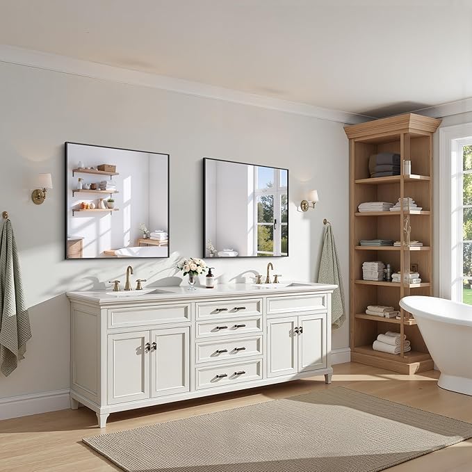 - Modern Design: KOCUUY 30x30 black vanity mirror features an innovative design that adds a fashionable touch. With classic square corners, it allows creativity and functionality in bathrooms, bedrooms, entryways, and more. Express your personal style with this versatile mirror.