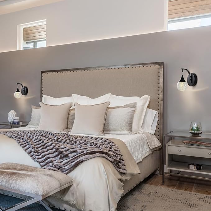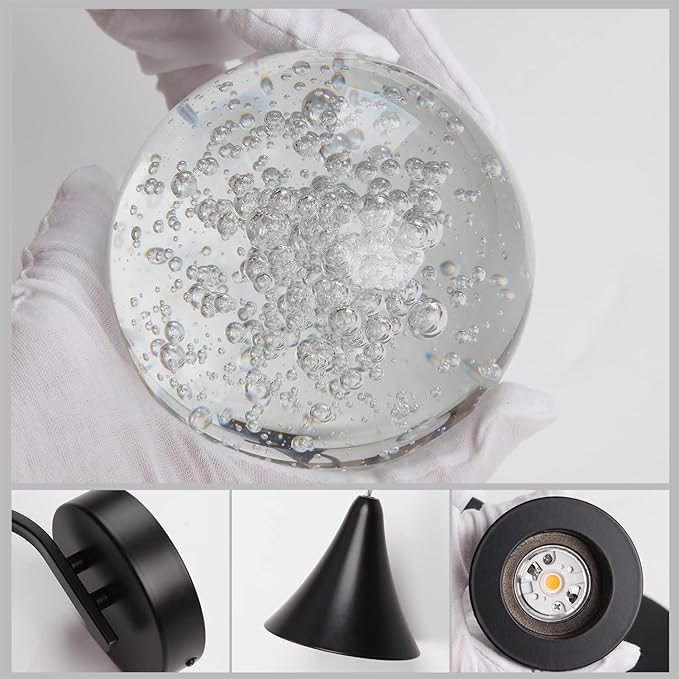 - [Modern Design] The bubble crystal wall sconce light with a matte black finished, there are some bubble in crystal globe inside. It is beautiful when the light lighting, you will see the shining bubble.