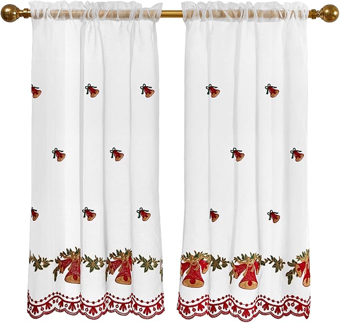 - Seasonal accent + privacy: You add a warm Christmas touch with classic bell embroidery while keeping your space bright and private. Semi-sheer fabric filters daylight so you can enjoy outdoor views without exposing the room.