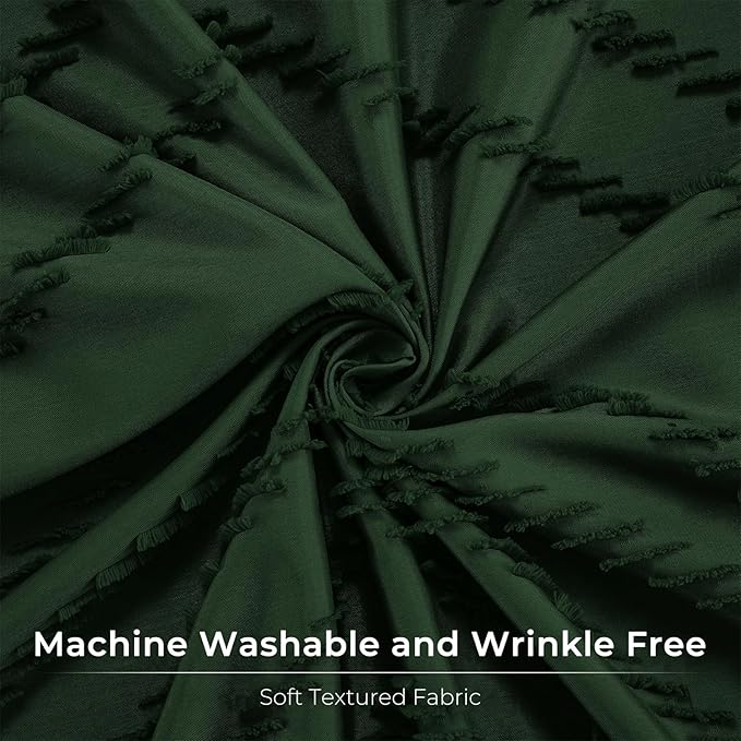 - BOHO SHOWER CURTAIN HIGH QUALITY -This dark green fabric shower curtain features a chevron tufted design that drapes beautifully and freshly. The chic design gives it a modern Boho and updated look, bringing a unique luxury style to your bathroom.