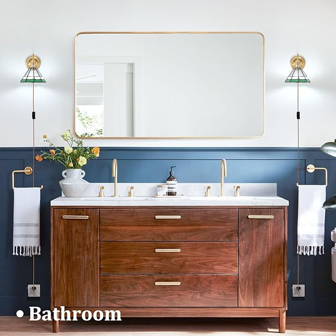 - 【Durable Material& Stylish Design】This vintage wall sconce is made of brass plated material for the base, which makes the base harder and more stable support. The lamp head and tube are made of brass, making it good colour and better metallic shine, with a glass lampshade, anti-corrosion and durable, and twisted wire extension 59.06". This gorgeous wall sconce exudes a vintage yet modern vibe that perfectly matches any style of house, adding a more sophisticated touch to your home lighting.