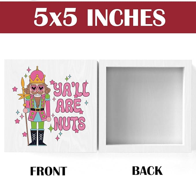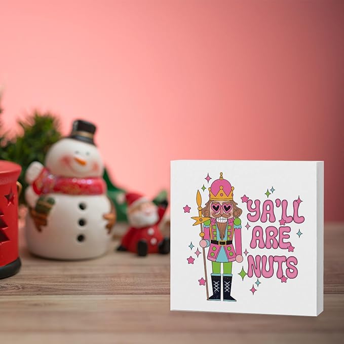 Pink Christmas Vacation Movie Decor Sign - Merry Xmas Decorations, Y'all Are Nuts - 5 x 5 Inch