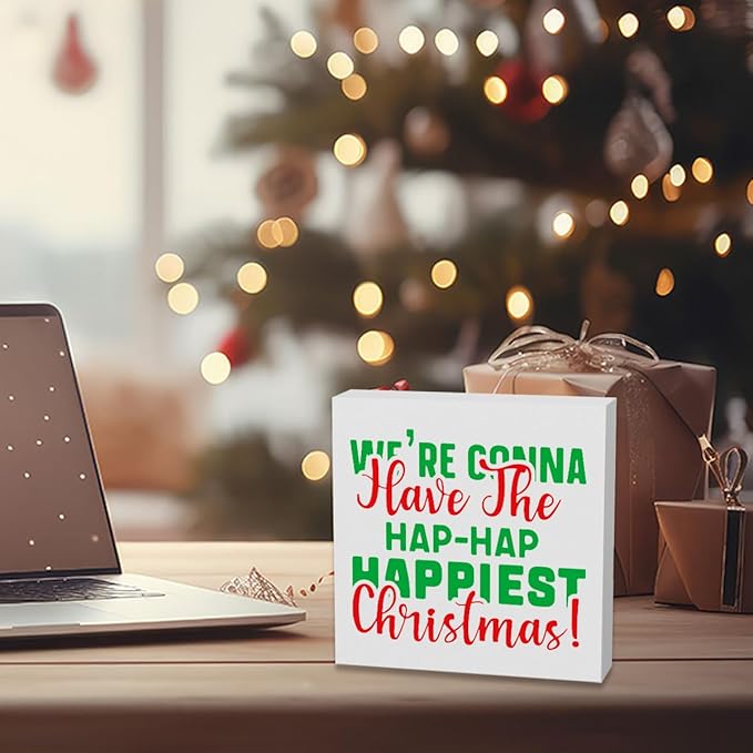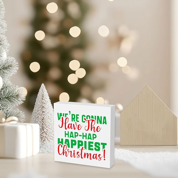 - - **Versatile Decor Piece**: Measuring 5 x 5 inches, this novelty funny sign fits perfectly on your desk, mantel, or tiered tray, adding a festive flair to any room—be it your living room, bathroom, or bedroom—making it a must-have for indoor holiday decorations!