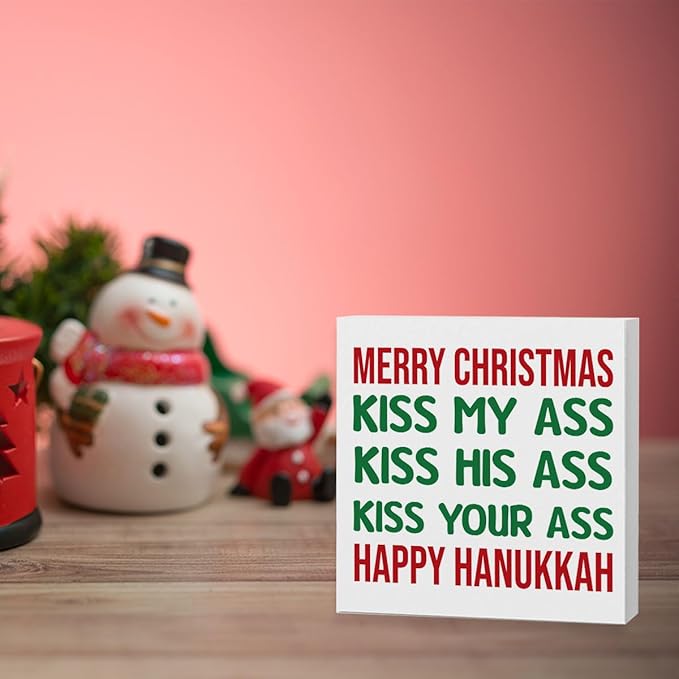 - - **Versatile Decor Piece**: Measuring 5 x 5 inches, this novelty funny sign fits perfectly on your desk, mantel, or tiered tray, adding a festive flair to any room—be it your living room, bathroom, or bedroom—making it a must-have for indoor holiday decorations!