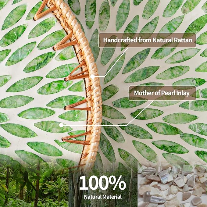 - Handcrafted Quality: Expertly made by skilled artisans using natural rattan and mother of pearl, this rattan serving tray adds a touch of natural beauty to any space.