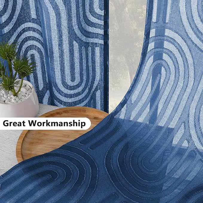 - Geometric Jacquard Clip: These sheer curtains feature a geometric jacquard clip design, enriched with Mid Century patterns, perfectly blending traditional and modern design elements. They enhance the overall decorative style, harmoniously complementing both contemporary minimalist and vintage styles