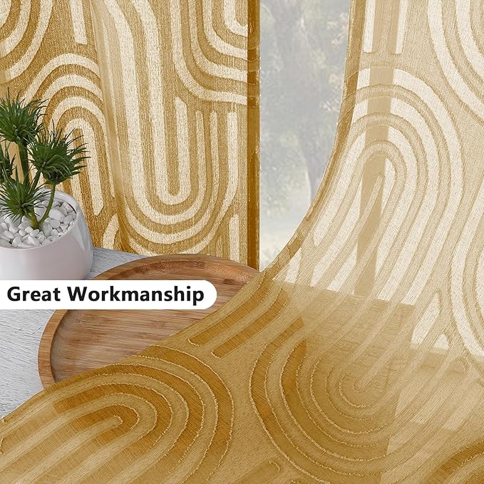 Simplebrand Sheer Gold Curtains 72 Inches Long 2 Panels for Window, Geometric Mid Century Light Filtering Semi Sheer Curtains for Front Back Patio Glass Door with Rod Pocket, 42" Wx72 L