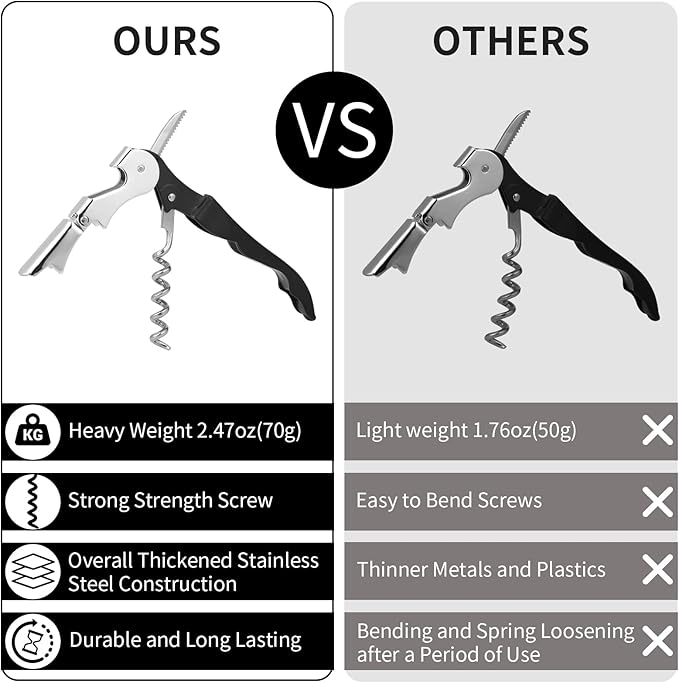 - Quality-Overall:Thickened carbon steel auger bits and weighted stainless steel double hinged are not easy to bend.Make the wine tool more strong and durable.