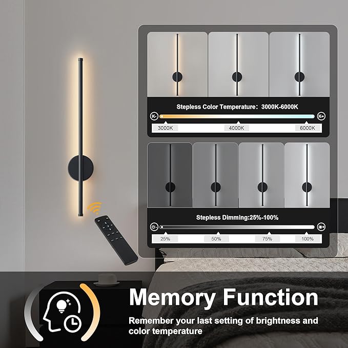 - REMOTE CONTROL & TOUCH CONTROL: This battery operated modern wall sconce equipepd with a remote control to easily change the setting without getting up. You can also manually touching the light button to directly control the color temperature and brightness