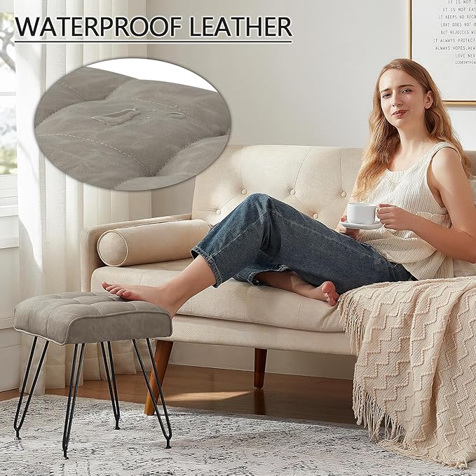 - 【LEATHER VANITY STOOL】: Rectangular ottoman foot stool with sponge cushion padded seat and metal legs provide comfort and sturdy support, which give you an excellent use. The PU material is easy to maintain, simply wipe gently with a soft wet towel to clean the stains.