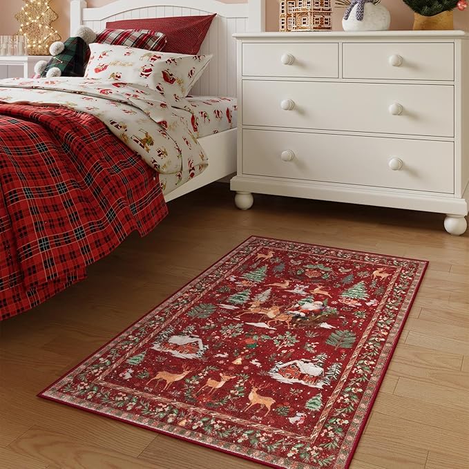 - [Christmas Red Rugs] - Add holiday cheer to your home with our washable Christmas kitchen rugs! Featuring festive designs like Santa, Christmas trees, elk, and snow, this vibrant rug brings a cozy, winter-wonderland vibe to any space for your home