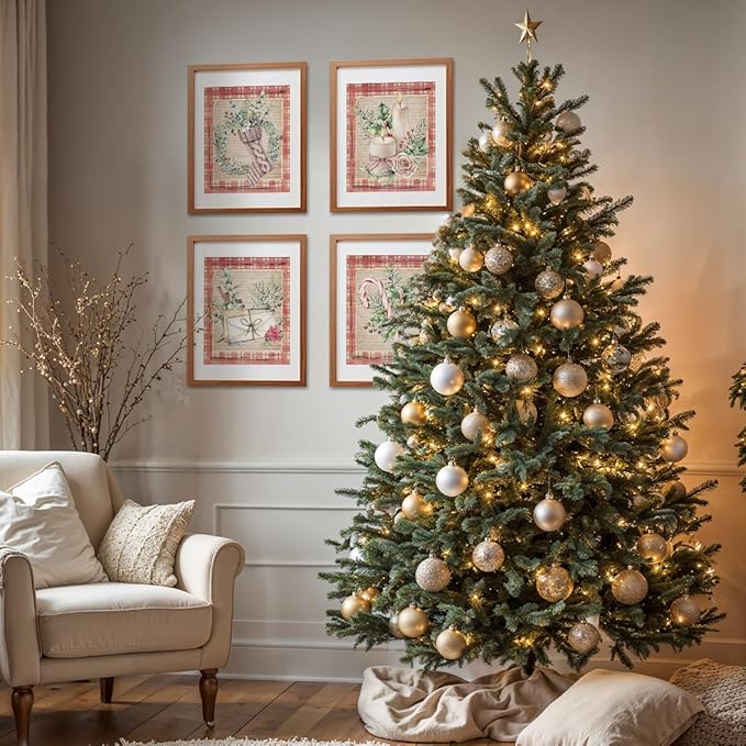 ETVISO Vintage Christmas Wall Art Prints Set of 4, Red Christmas Decor, Retro Christmas Garland Poster, Winter Holidays Gift Print Decor for Gallery Living Room Bathroom, 8x10 (Unframed)